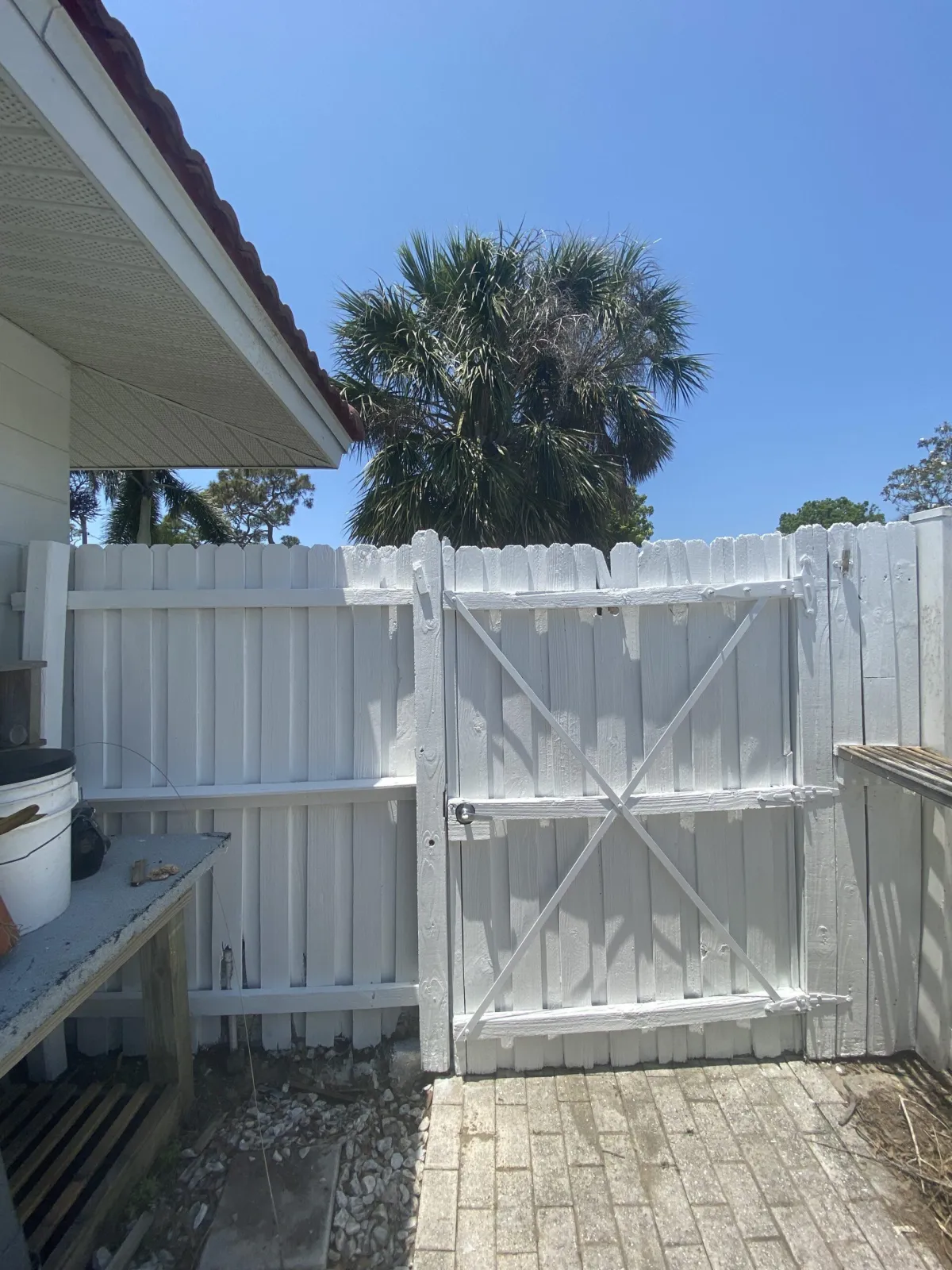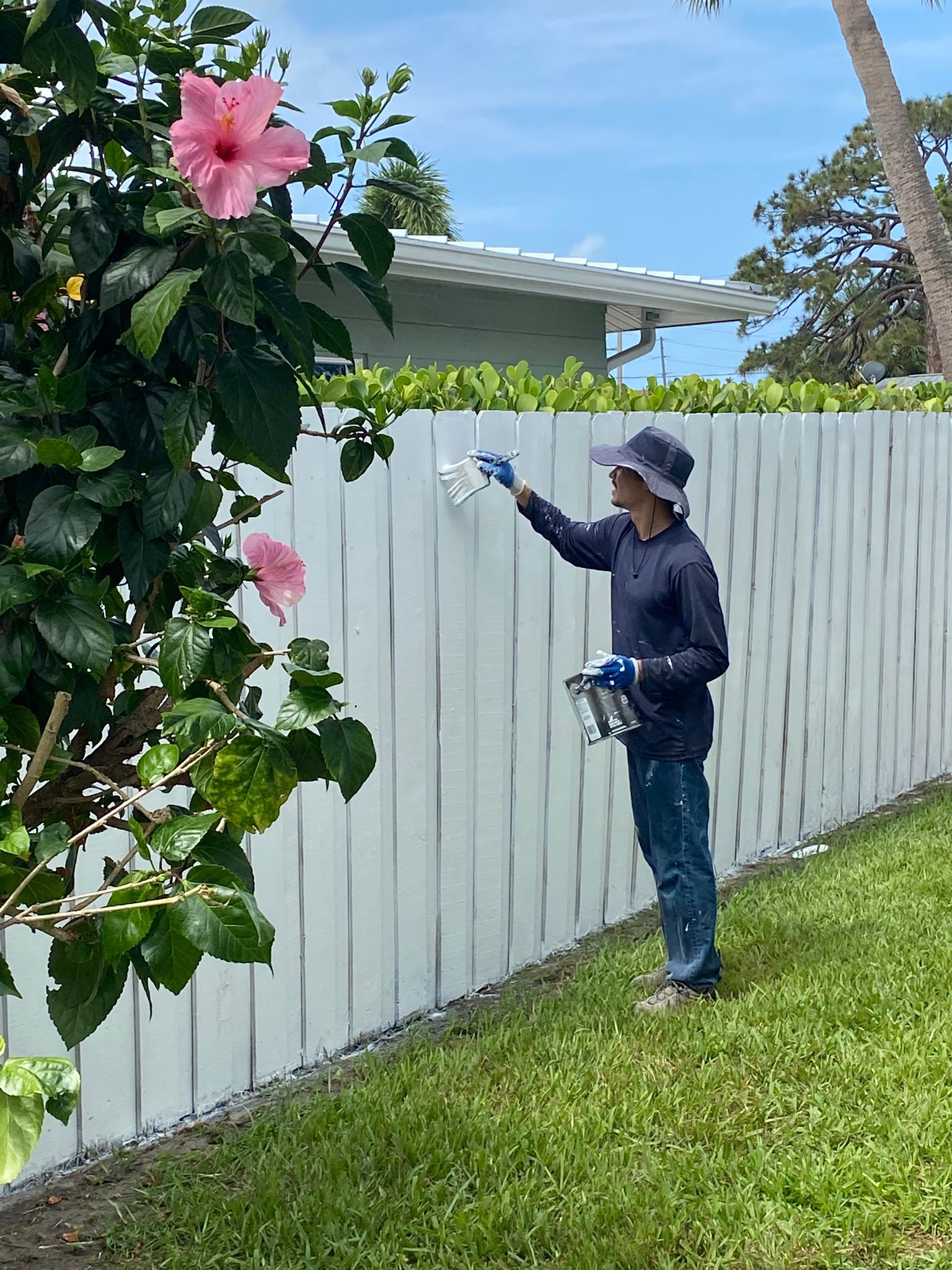 Wood, vinyl, and metal fence painting using durable exterior coatings.